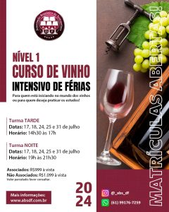 A Associação Brasileira de Sommeliers do Distrito Federal (ABSDF) acaba de anunciar o Curso Básico de Vinhos Nível 1 – Intensivo de Férias, destinado a iniciantes e entusiastas que desejam aprofundar seus conhecimentos sobre vinhos. O curso, ideal para quem quer aprender a comprar, servir, apreciar e harmonizar vinhos, oferece uma experiência completa com cinco aulas, incluindo a degustação de 15 vinhos ao todo.