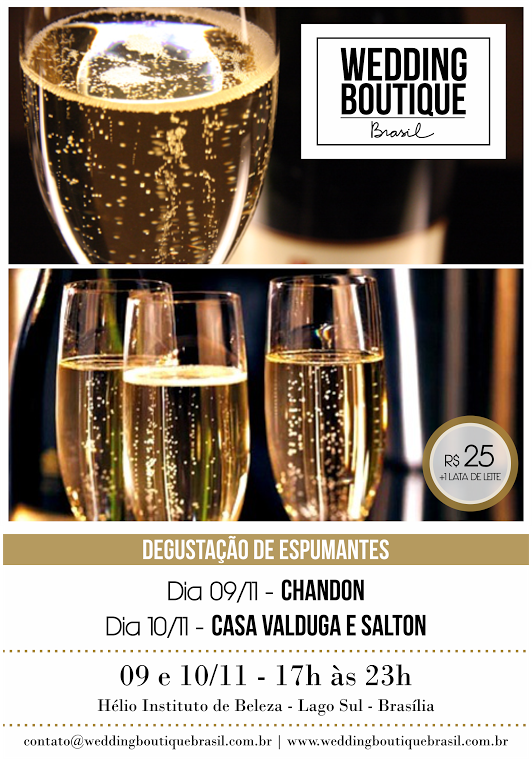 No dia 09 de novembro, a Chandon vai oferecer degustação de espumantes aos noivos. Já no dia 10, a Pires de Sá Vinhos vai estar presente no Wedding Boutique Brasil, com uma mesa de degustação de espumantes e vinhos para os noivos. Serão servidos renomados rótulos das vinícolas Casa Valduga e Domno. Representantes da Salton também vão expor seus rótulos nesse dia.