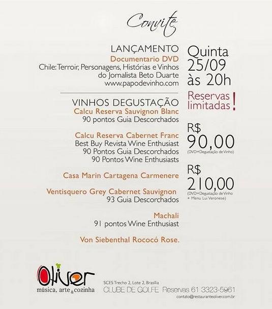 VALOR – R$90,00 (DVD+degustação de vinhos) ou R$210,00 (DVD+degustação de vinhos+menu Lui Veronese)