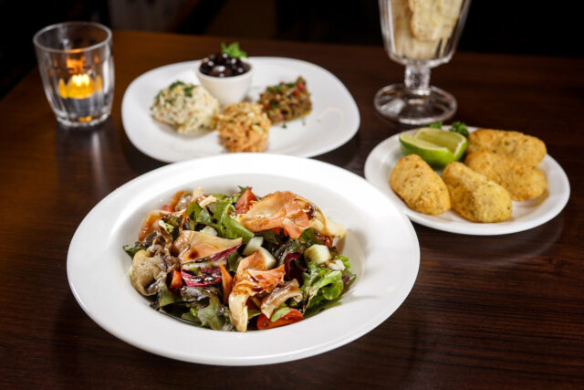 De entrada, estarão disponíveis para degustarem à vontade: couvert da casa, feito com pasta de ricota temperada, pasta de tomate seco, azeitonas temperadas e caviar de berinjela acompanhado por torradas; salada com cogumelos e balsâmico, com folhas verdes com mix de cogumelos grelhados, tomate seco, muçarela de búfala, molho pesto e aceto balsâmico; e, ainda, bolinhos de bacalhau.