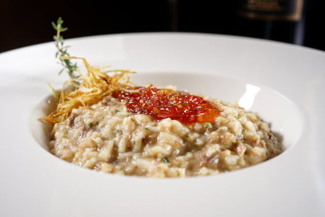 Já para prato principal, uma grande variedade para o cliente escolher: nhoque ao funghi, feito de batata baroa ao molho de funghi, tomate seco e manjericão; ou orecchiette ao molho pesto de manjericão, com ricota de búfala e amêndoas; ou nhoque de mandioca em fonduta de parmesão, charque crocante e salsa; ou espaguete de espinafre feito na chitarra da casa ao molho de bacalhau em lascas em natas com tomate sweet grape, alho-poró, salsa e parmesão; ou filé de tilápia grelhada sobre cama de geleia de alho negro salpicado por raspas de limão siciliano, acompanhado de legumes salteados, cenoura, abobrinha, brócolis e tomate cereja; ou risoto de camarão milanês; ou filé de robalo grelhado com camarões ao molho de leite de coco, pimenta dedo de moça, alho-poró e salsa, acompanhado de purê de batata roxa; ou risoto de cordeiro; ou medalhão de filé mignon grelhado ao molho de vinhos tinto e do Porto, acompanhado de risoto de Grana Padano.