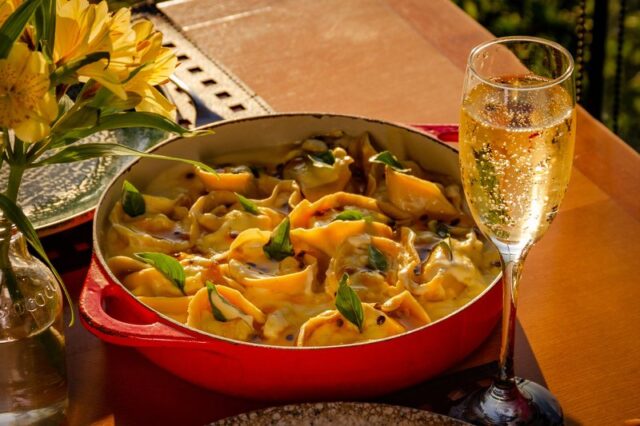 Que pasta Cantina – O chef Matheus Grilo preparou um menu e apresenta duas propostas de pratos que compartilham até seis pessoas. O primeiro prato é o Tagliata di manzo alla crema di gorgonzola. Para esta deliciosa opção, escalopes de filé mignon são preparados ao molho gorgonzola, acompanhados de fettuccine na manteiga e sálvia, salada caprese e finalizado com parmesão (R$ 339); Enquanto a segunda é o Cosciotto di Agnello, um pernil de cordeiro marinado em vinho tinto e especiarias. Este prato é servido com vegetais cozidos, fettuccine burro e sálvia e uma incrível Salada Caprese (R$ 449).