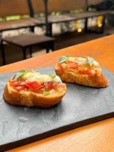 - Bruschetta Napolitana com coalhada, tomate e manjericão fresco