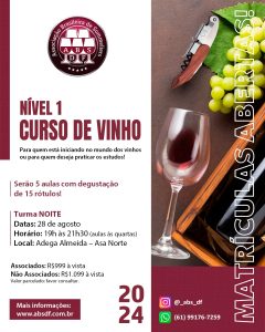 Já imaginou aprimorar os seus conhecimentos na área do vinho de forma teórica e prática? Então aproveite essa oportunidade! A Associação Brasileira de Sommeliers do Distrito Federal – ABSDF está com uma série de cursos previstos para acontecer agora nos meses de agosto e setembro .