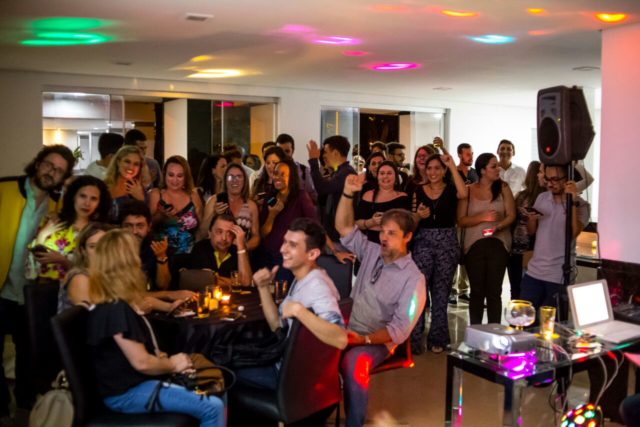 O vinho escolhido para ser degustado foi o tinto português Intimista, com um nome que expressa bem o tom da festa e um rótulo colorido que lembra um pouco os azulejos de Portugal.Com um blend das uvas Alfrocheiro, Aragonêz, Trincadeira e Moreto, é um vinho interessante, bem frutado e com muita cereja fresca, notas de baunilha e especiarias. Os aromas e as notas se misturaram ao clima da festa animada pelos diretores da escola Steph Gonçalves, Steph Garin e Laurent D’ancona com os alunos amigos. Um quizz em francês com tradução foi exibido durante a programação para animar o evento. Uma das curiosidades foi a descoberta de vários pratos franceses, entre eles, uma sobremesa semelhante à bomba de chocolate no Brasil, chamada de “éclair”.