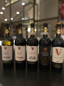 – Descrição: Vinho tinto com várias uvas tradicionais da Toscana.