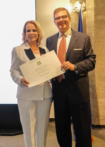 Na segunda noite do Vini d´Italia, a curadora do evento Sueli Maestri, especialista em enogastronomia, foi agraciada com a importante honraria de Cavaleiro da Ordem da Estrela da Itália – A ordem é concedida pelo Presidente da República Italiana para pessoas que promovem o prestígio italiano no exterior. A honraria foi entregue pelo Embaixador Francesco Azzarello.