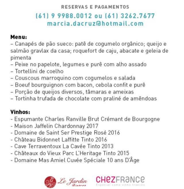 Abaixo você pode conferir o menu e os vinhos que serão servidos: