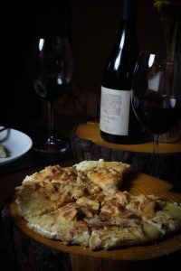 As pizzas, que estão se tornando o carro-chefe da casa, trazem tanto sabores clássicos quanto criações exclusivas. Entre as opções, estão a tradicional Portuguesa, com pimentões braseados, ovo de codorna, azeitonas, presunto de parma e tomate confit, e a calabresa com requeijão. Para quem busca algo diferente, há a pizza de frango com aioli de pequi e bacon, três queijos com pêra, mussarela de búfala com molho pesto e tomate confit, e a versão vegetariana, com pimentões braseados, cebola roxa, cogumelos e molho pesto.