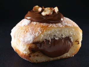 Entre os destaques do menu está o croissant de chocolate (R$ 19,90), que mantém a tradição da massa folhada, e o bomboloni de chocolate (R$ 13,90), inspirado no clássico italiano e preparado com massa de brioche e recheio generoso. Outra aposta é o cruffin de chocolate (R$ 22), combinação entre croissant e muffin, com camadas crocantes e recheio de trufa.