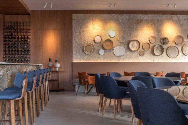 O projeto assinado pela arquiteta Tatiana Dornbusch Guedes para o Marie Cuisine tem, além da área interna, uma varanda com vista privilegiada da cidade. O restaurante conta ainda com um balcão, estilo bar, para quem quiser apenas um drink. Destaque também para a parede com 51 pratos decorativos, da ceramista Andrea Leigue.