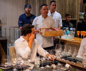 O cliente pode escolher entre cardápios especiais ou pela experiência Omakase – o “menu confiança” –, em que o chef prepara, diante dos convidados, uma sequência de pratos elaborados com pescados frescos e ingredientes selecionados. O menu (R$ 630,81 por pessoa) inclui dez tempos, entre entradas frias, pratos quentes e sobremesa, com iguarias como bluefin, camarão tigre, vieiras, lagosta, ouriço, foie gras, ovas e king crab.