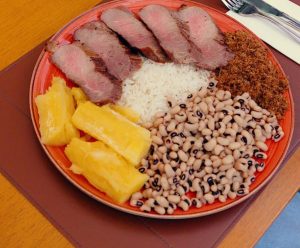 - Filé de coxa assada (R$ 42): acompanhado de baião de dois, farofa de cebola e vinagrete.