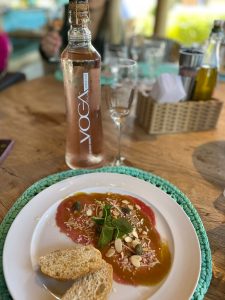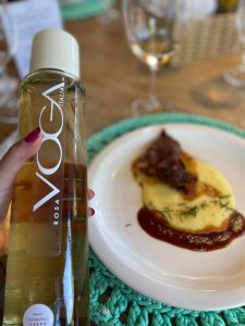 O cardápio cuidadosamente preparado começou com um carpaccio de lâminas de carne bovina acompanhado de um delicioso Espumante Voga Pinot Grigio Rosé. Em seguida, saboreei o Pirarucu Al Poivre, um peixe amazônico sustentável com risoto de grana padano, harmonizado com o elegante Voga Rosé Trevenezie IGT. A Costelinha BBQ defumada, servida com purê de batata, combinou perfeitamente com o robusto Voga Merlot Terre Siciliane IGT.