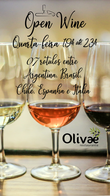 No Olivae, o Open Wine acontece todas as quartas-feiras e mensalmente há troca de rótulos. O projeto é realizado em parceria com o sommelier Marcos Rachelle, co-proprietário da Videira Vinhos e da World Wine Bsb, que é o responsável pela seleção dos vinhos. Confira abaixo os rótulos que serão servidos este mês, todas as quartas: