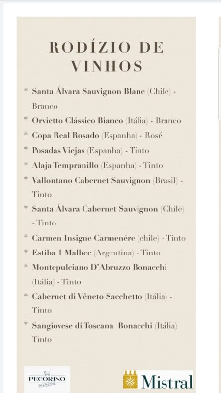 Rodízio de Vinhos Restaurante Pecorino Brasília
