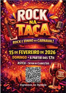 A ASTCU, no Setor de Clubes Sul, será palco do evento Rock na Taça no dia 15 de fevereiro, a partir das 17h. A proposta é unir música ao vivo, vinho e convivência em uma experiência pensada para ser apreciada sem pressa, em um ambiente descontraído e acolhedor.
