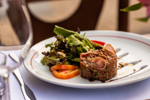 O cardápio é à la carte e o preço justo, destaque para clássicos como Steak Tartare com salada e picles de rabanete (R$ 37), Rilette de porco servida com fatias de pão baguete (R$ 35), Boeuf Bourguignon com purê de alho assado (R$ 58), Medalhão ao poivre e risoto de abobrinha (R$ 68), Magret de pato (R$ 74), Costeletas de cordeiro com arroz de pera e amêndoas (R$ 72) e Couscous marroquino com cogumelos e salada (R$ 45).