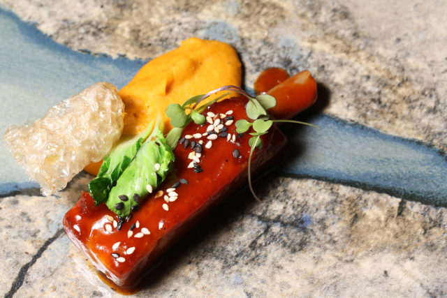 Costillas nikkei com purê de grão-de-bico (Harmonizada com Quereu Merlot)