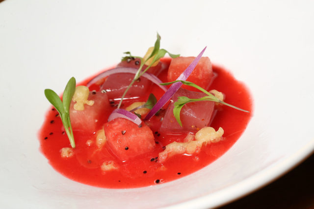 Ceviche de atum, melancia e goiaba (Harmonizado com Sospirolo Nature)