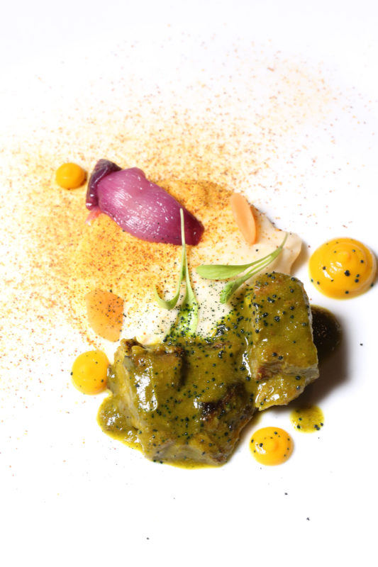 Cabrito braseado, creme de feijão branco, echalot glaseado e quiabo frito (Harmonizado com Chateau Bauvallon)