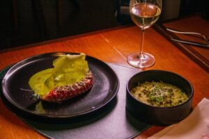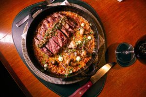 Polvo Grelhado (com molho de espinafre e manjericão com risoto trufado de ervilha); Ravioli de Lagosta (e palmito com molho de alho-poró e ovas de salmão; Nosso Ancho (ancho na brasa com arroz socarrat de cogumelos). Para adoçar o paladar, opções como Mousse de Chocolate Blanco (com frutas vermelhas e creme de amêndoas trufadas) e Mil Folhas de Amendoim (com doce de leite e creme de caramelo com flor de sal).