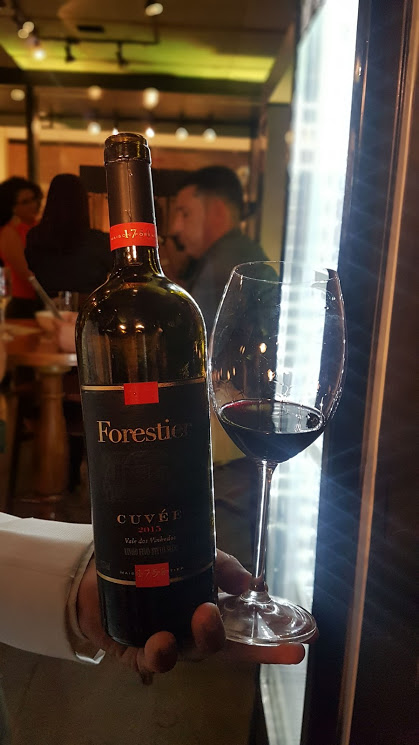 E o tinto desgustado foi o Forestier Cuvée 2015, das uvas Cabernet Sauvignon, Merlot e Tannat. Esse vinho é produzido na Serra Gaúcha pela Forestier Vinhos e Espumantes, que é também responsável por fazer o espumante Gran Legado.