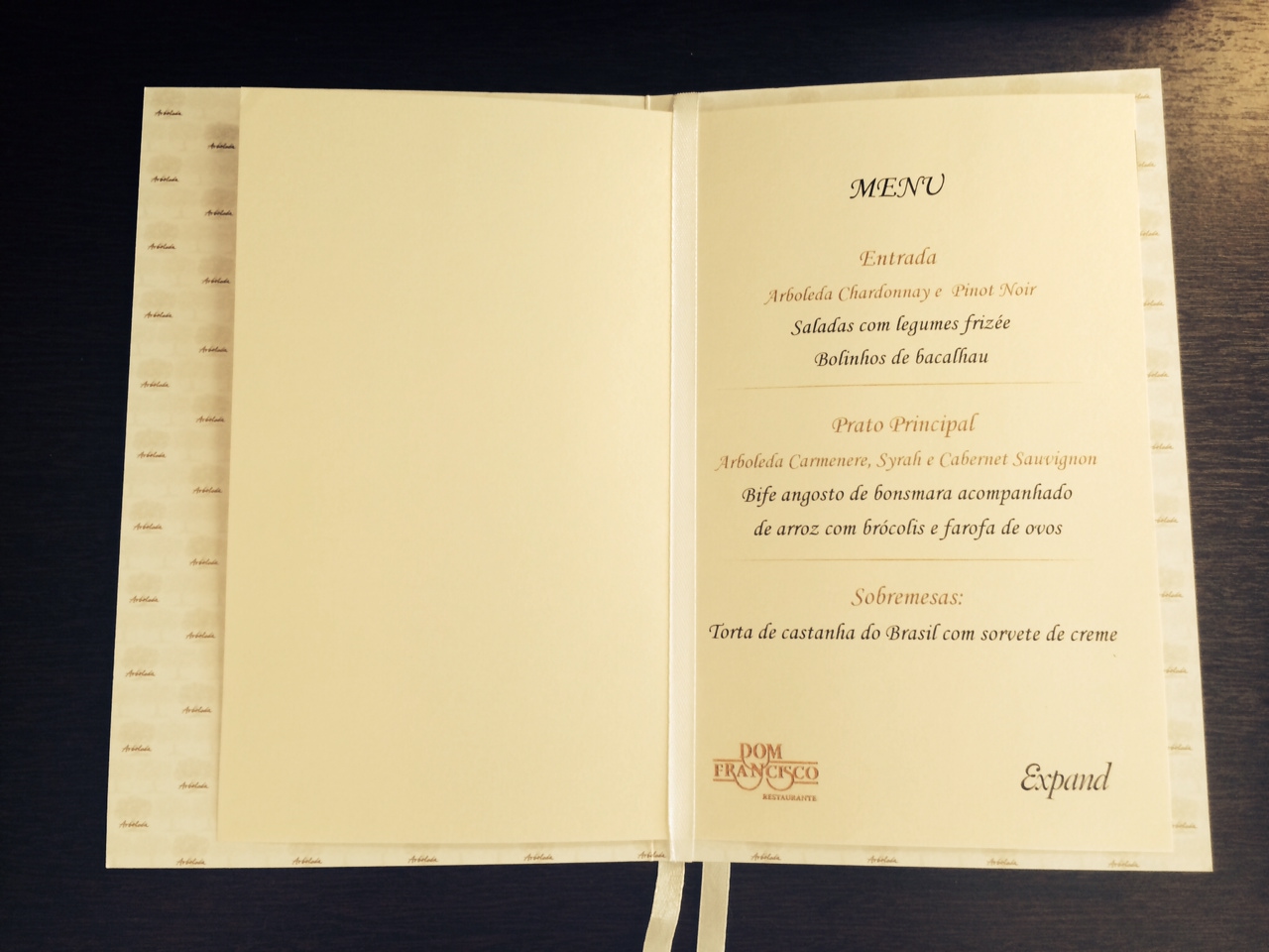 Almoço perfeito – Para acompanhar os vinhos da Arboleda um cardápio especial foi preparado no restaurante Dom Francisco da Asbac. Confira: