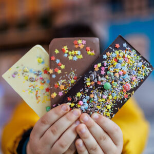 Já no Nível 2, as crianças têm a oportunidade de criar três tabletes utilizando diferentes tipos de chocolate, incluindo amargo, ao leite e branco. Elas aprendem sobre moldagem, decoração e técnicas para retirar o chocolate do molde com perfeição. Este workshop ocorre todos os domingos, das 15h às 16h, pelo mesmo valor de 20 euros por pessoa, também requerendo a presença de um adulto.