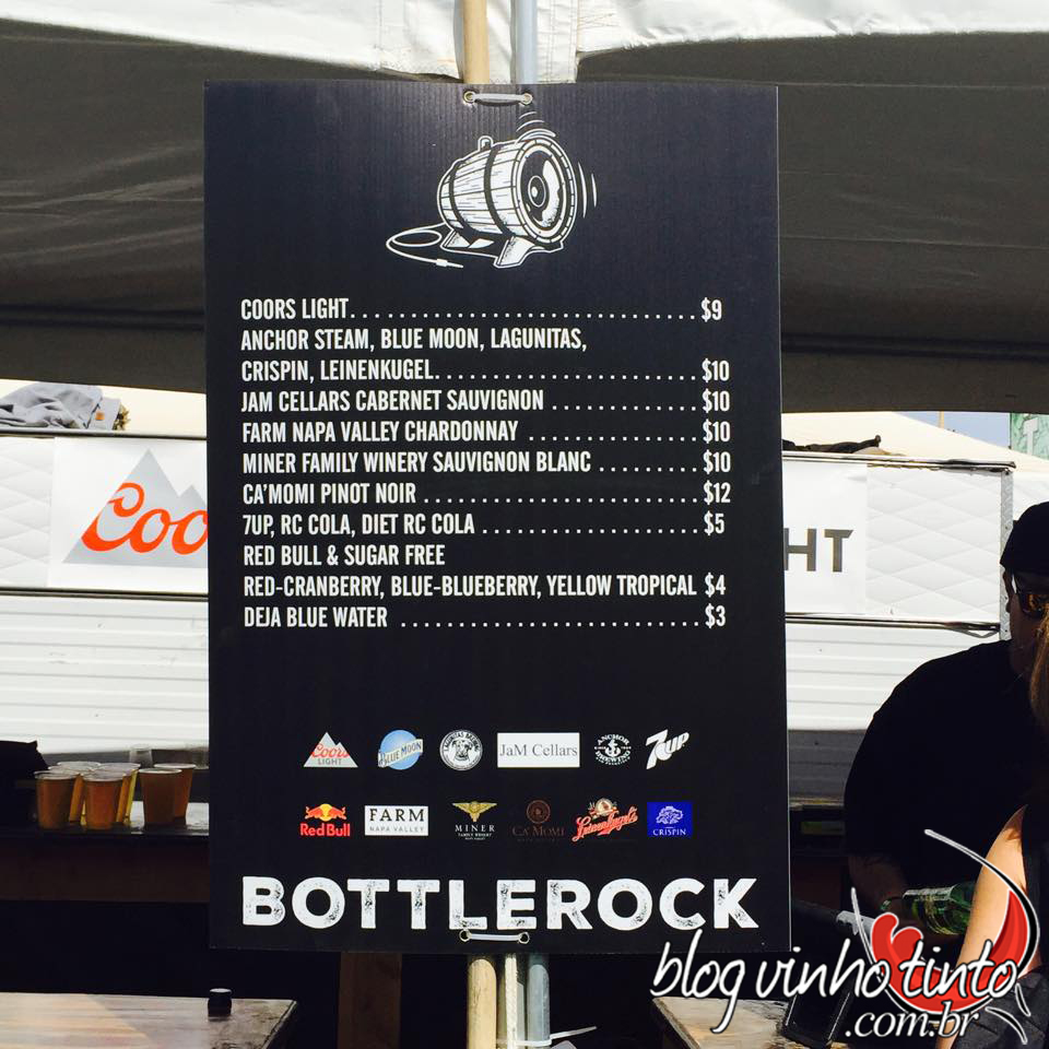 28 vinícolas californianas marcaram presença nessa terceira edição do Bottle Rock. Além de venderem seus melhores vinhos para serem degustados durante os shows, ofereceram brindes, cupons de descontos e, também disponibilizaram espaços de entretenimento em cada um dos respectivos estandes; Silver Oak, Coppola, Clos du Val, Vezer, Robert Mondavi foram algumas das vinícolas participantes.