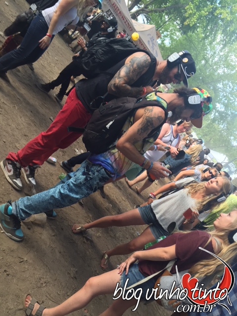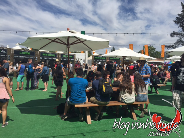 Diversos rótulos artesanais americanos também foram comercializados no evento, entre eles Coors Light e Blue Moon. Amei tudo. Infelizmente, só achei o evento caro, pois além de pagar US$140 pelo ingresso de um único dia e US$40 pelo transporte (ida e volta para San Francisco), tive que desembolsar entre US$10 e US$12 por copo de vinho. Inicialmente, achei meio incoerente o valor, afinal, pensei que a ideia do evento fosse divulgar e popularizar a bebida, que inclusive era consumida em copo de plástico ou acrílico. Mas, depois conversando com alguns americanos descobri que nos Estados Unidos eles vendem a bebida alcoolica com preço elevado durante os shows para evitar que as pessoas bebam demais e se embriaguem. Acho que a tática dá certo porque, por incrível que pareça, não vi nenhuma confusão e ninguém bêbado de dar vexame!!!