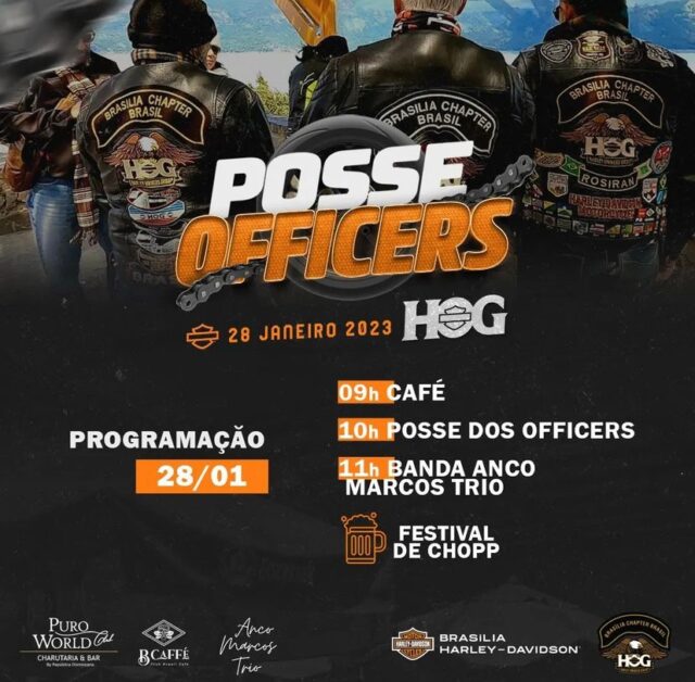 Será um café da manhã, com início às 9h da manhã. O evento contará com a posse do novo Time de Officers, do HOG Brasília Chapter, acompanhado de uma experiência maravilhosa com os handmads da Puro World Club, além de festival de chopp e degustação de café da @clubbrasilcafé. Além disso, terá apresentação da super banda de jazz Anco Marcos Trio, prevista para as 11h.