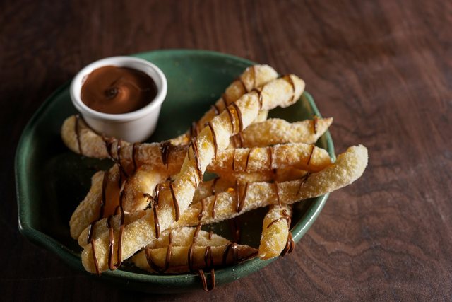 Para sobremesa, o Angioletti Fritti (R$ 21), que são tiras de massa de pizza fritas, polvilhadas com açúcar de confeiteiro. A sobremesa acompanha dip de Nutella finalizado com raspas de laranja Bahia ou de Doce de leite finalizado com raspas de siciliano.