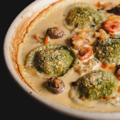 Entre as opções do cardápio, as pastas recheadas, como o Ravioli Florença (R$ 65,90) com brie e geleia de damasco, ao molho de manteiga de sálvia com amêndoas e lascas de grana padano. Outra sugestão é o Sorrentino Baccalà (R$ 84) feito com massa de espinafre com recheio de bacalhau, tomate cereja confitado e azeitona preta ao molho de mascarpone com limão siciliano.
