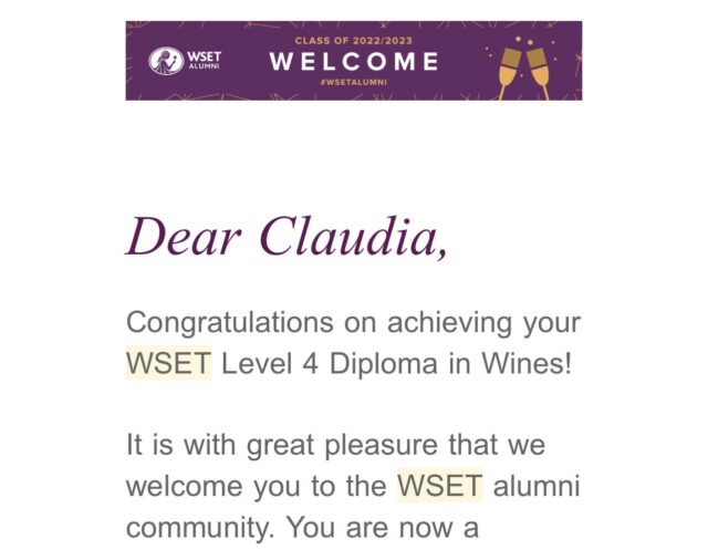 Claudia Oliveira – Em primeiro lugar, gostaria de explicar um pouquinho como funciona o curso, pois muita gente me pergunta sobre isso. O Diploma é composto por seis módulos, cada módulo tem aulas e degustações, além de provas. Estas têm data fixa ao longo do ano e são feitas com os mesmos vinhos em todos os lugares do mundo onde há escolas representantes (no Brasil é a Enocultura), são corrigidas em Londres, portanto feitas em inglês, envolvem questões dissertativas sobre temas diversos e também a análise de vinhos às cegas. Os professores que tive foram brasileiros (também DipWset) e estrangeiros. Todo o material é em inglês.