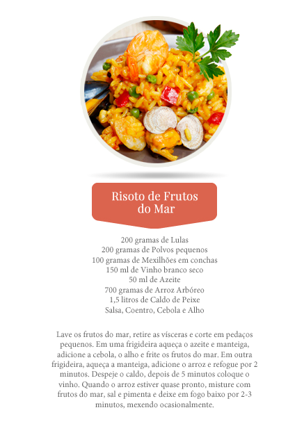 Para a situação, o ideal é servir um jantar elegante. Um risoto de frutos do mar é fácil de fazer, permitindo que você curta bastante tempo com a pessoa amada. Veja a receita: