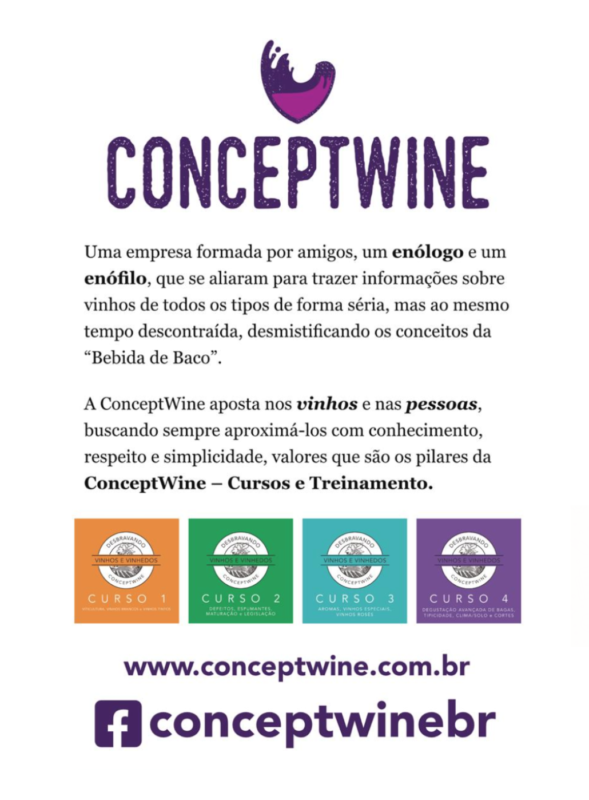 Juntos, eles fundaram a ConceptWine e, desde 2018, oferecem quatro módulos distintos dentro de um curso geral denominado “Desbravando Vinhos e Vinhedos”. As aulas acontecem na vinícola Luiz Argenta, onde Edegar é o enólogo responsável.
