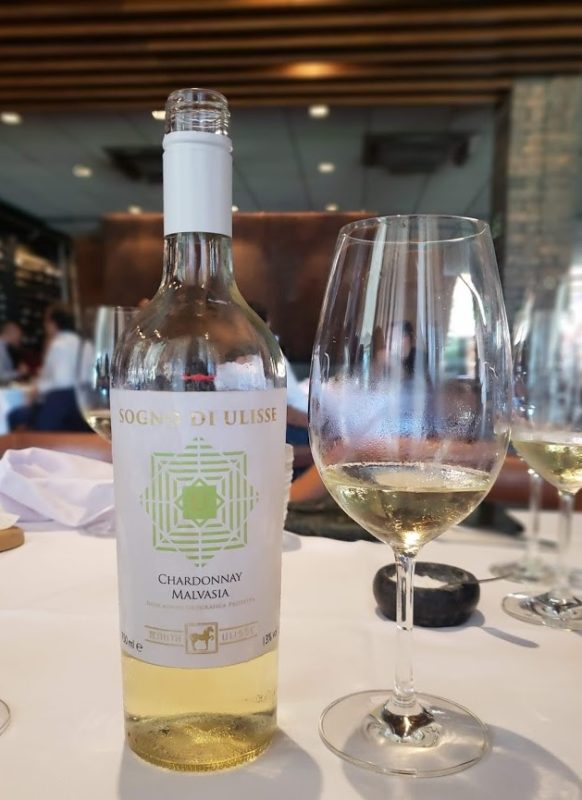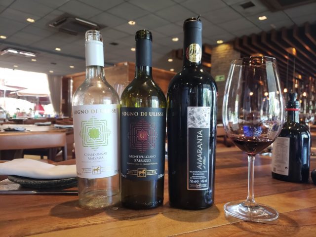 O primeiro vinho servido foi o Sogno di Ulisse Chardonnay e Malvasia da safra 2017 IGP Terre di Chieti.