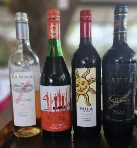 The Source Grenache Rosé 2023 (produzido em Nashik) – Este vinho é um excelente exemplo do potencial da Índia para produzir vinhos rosados de qualidade, um segmento que tem ganhado popularidade entre consumidores tanto locais quanto internacionais. O vinho tem um estilo bem comercial, com uma cor que lembra os rosés da Provence, e um perfil aromático que apresenta notas de frutas vermelhas frescas como morango, cereja e framboesa. Enfim, um típico “vinho de piscina”. Possui uma boa acidez que oferece uma sensação de frescor ao açúcar residual que apresenta. Sem dúvidas, um vinho que seria facilmente aceito no mercado brasileiro. Esse vinho é bastante vendido na Índia. Sua versatilidade o torna perfeito para acompanhar uma ampla gama de comida, inclusive os codimentados pratos indianos. Vale ressaltar que é um vinho honesto e bem feito de Grenache com gosto de quero mais.