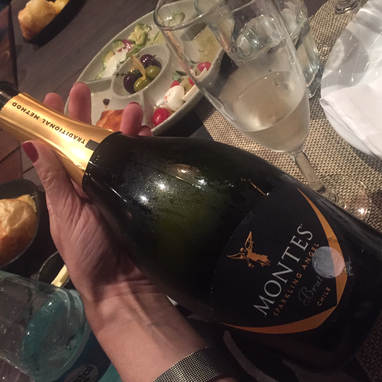 A noite começou com a apreciação do espumante Montes Sparkling Wines. Um espumante Brut feito 70% com Pinot Noir e 30% com Chardonnay pelo método tradicional, o mesmo de Champanhe. A bebida passou 36 meses em contato com as leveduras. Particularmente, achei o resultado interessantíssimo. Em terra de espumantes premiadíssimos como o Brasil, vender o Montes Sparkling Wines tende a ser um desafio, mas acredito que terá boa aceitação por aqui pelas seguintes razões: apesar do longo tempo de contato com as borras, a refrescância supera o sabor e o aroma intenso das leveduras, também possui um final de boca com leve adocicado, o que agrada o paladar brasileiro. Além disso, tem boa relação preçoxqualidade quando comparado aos grandes espumantes produzidos no Brasil. Custa: R$190.