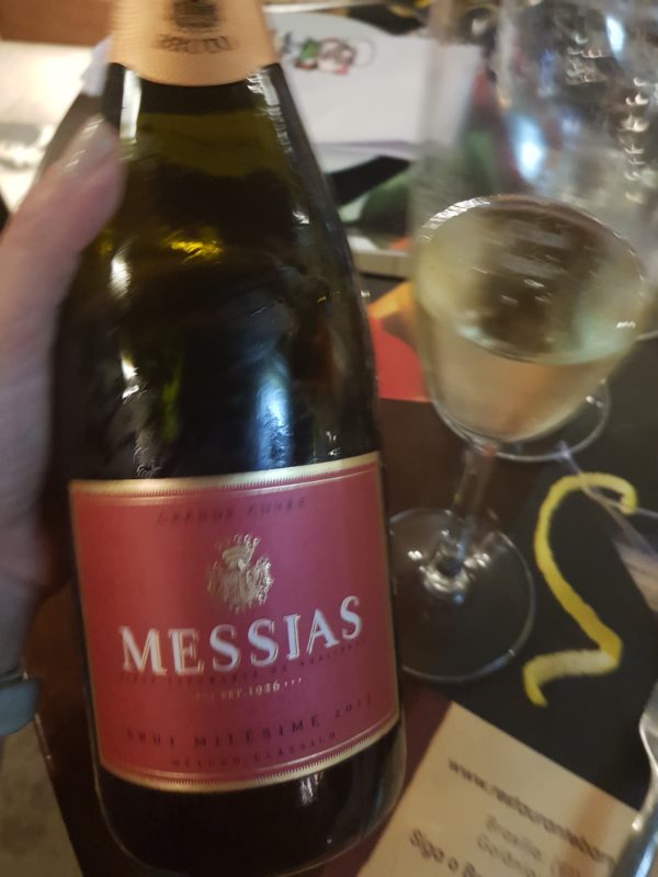 A noite começou com um delicioso espumante elaborado pelo método tradicional: o Messias Grand Cuvée Brut Millesime, produzido na Bairrada com as uvas Baga, Bical e Chardonnay, possui bolhas finas e persistentes e cor amarelo palha. Na boca mostra-se cremoso e com boa persistência. É leve e fresco com notas de levedura e tostado. O preço está excelente: em média R$49,00.