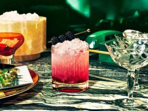 Elegante e aromático, o Bramble combina gin e frutas vermelhas.