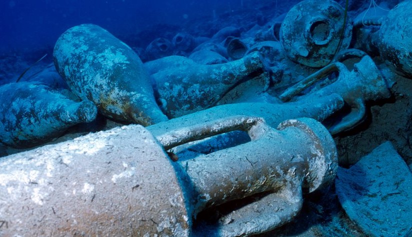 Expedição encontrou ânforas de vinho em antigo navio romano. Reprodução – Facebook