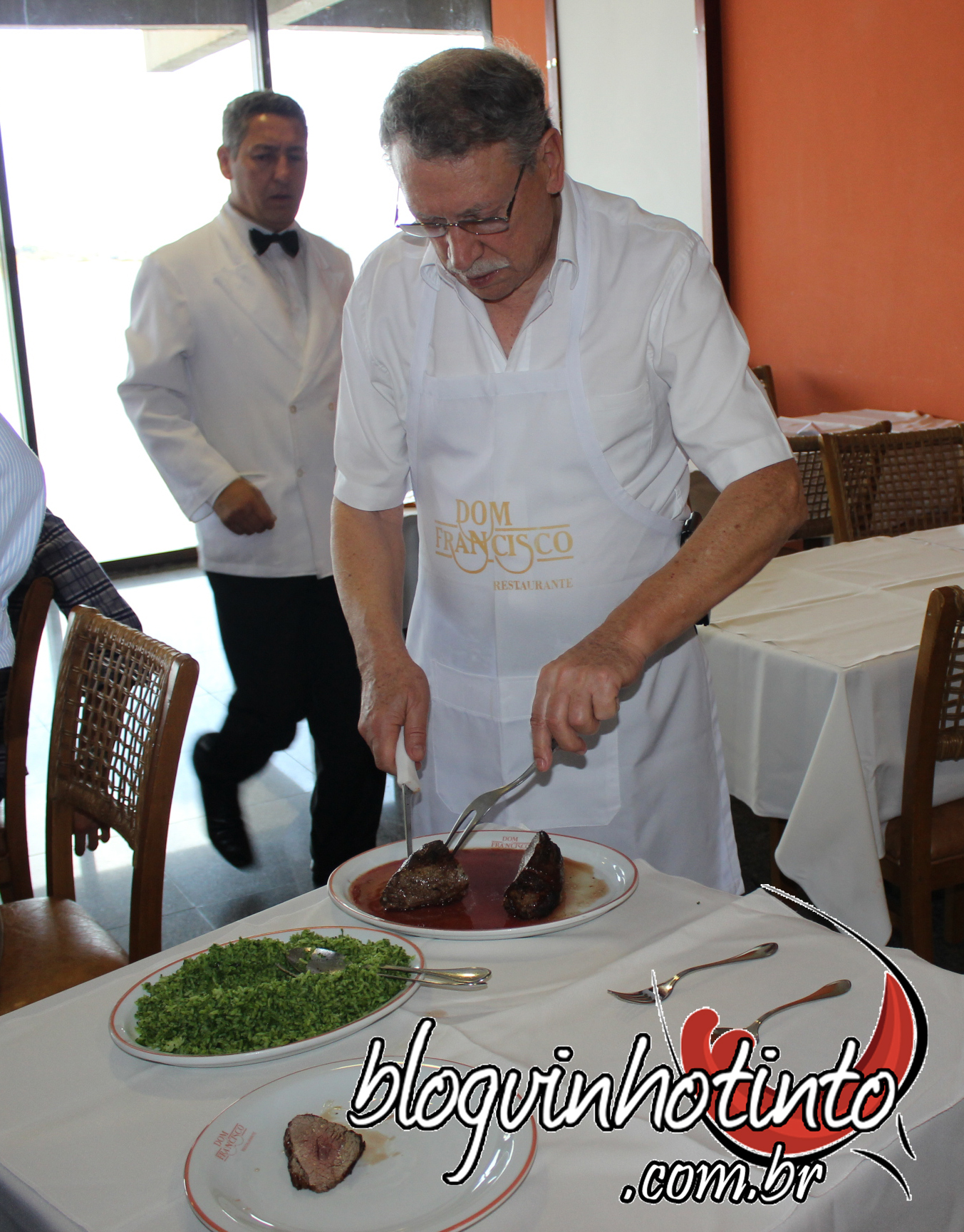 Degustação e harmonização – Degustamos ao total 10 vinhos, seis deles produzidos exclusivamente pela Wine and Soul (Guru, Manoella, Quinta da Manoella, Pintas Character, Pintas e Porto Tawny) e outros quatro produzidos por Sandra ou Jorge em parceria com outras empresas onde prestam consultorias ou realizam parcerias. Todos os vinhos foram devidamente harmonizados com cardápio e pratos elaborados especialmente pelo Chef Francisco Ansiliero, do tradicionalíssimo Restaurante Dom Francisco (Asbac), que fez questão de servir pessoalmente os convidados. O menu foi composto de salada, costela de tambaqui, saltimboca da Amazônia, maminha de alcatra prime, ancho Prime, e mousse de chocolate.