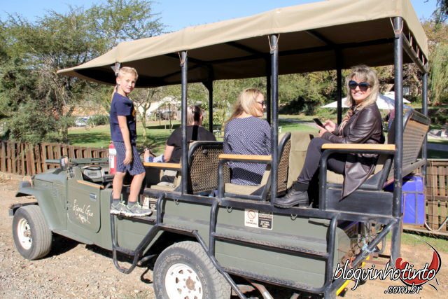 Lá fiz um passeio bem interessante, chamado “Game Drive“. A aventura foi realizada a bordo de um carrinho de safári, com direito a paradas regadas aos melhores espumantes e vinhos da vinícola rumo ao topo das montanhas onde estão localizados alguns vinhedos.