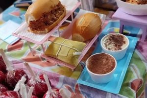 No cardápio, estão versões veganas de pratos tradicionais e internacionais: carne louca de jaca, churros, arroz doce, curau, espetinhos, hot dog coreano, yakisoba, sanduíche de falafel, quentão, vinho quente e até milk shake de milho verde.