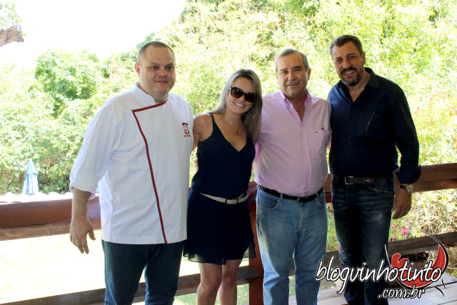 Menu – Assim que chegaram ao local, os participantes foram recebidos com um coquetel com creme frio de beterraba e provolone crocante; Bocconcino de búfala (da Tapuio) com tomatinho e pesto de rúcula; e Ragu de coelho com curry e pães tostados todos harmonizados com Chandon Brut Rosé.