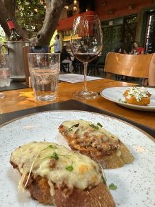 Ao ar livre, sob o brilho das pequenas luminárias que criam um ar festivo e romântico, brindamos ao clima agradável e ao verde que nos cercava. A atmosfera era tão convidativa que parecíamos estar em uma cena de filme italiano.
