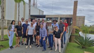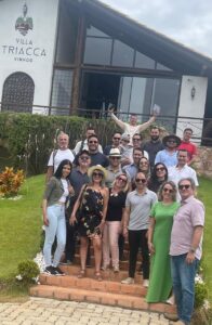 Um grupo de sommeliers de Brasília de diversos restaurantes e empresas da cidade visitou no início desta semana a Villa Triacca Hotel Vinícola & Spa, uma das dez empresas integrantes do projeto Vinícola Brasília – VB. O grupo foi recebido pelo empresário Ronaldo Triacca e sua esposa Ana Cenci. Os profissionais tiveram a oportunidade de acompanhar de perto todo o processo de produção dos vinhos do Cerrado brasiliense, feitos por meio da técnica da dupla poda. Houve também degustação de seis rótulos da Villa Triacca e também do inédito Malbec 2022 da VB. A sede da vinícola Brasília também foi visitada (foto) e o passeio foi encerrado com um almoço servido no restaurante Sovizzo, localizado dentro da Villa Triacca.