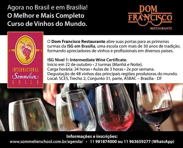 - Cursos da ISG – International Sommelier Guild: Escola internacional, presente em vários países. No Brasil, a Sommelier School tem a licença exclusiva. A formação completa, desde o nível 1 (para iniciantes) até o nível 3, qualifica e prepara os alunos para os títulos de “Master of Wine” e “Master Sommelier Internacional”